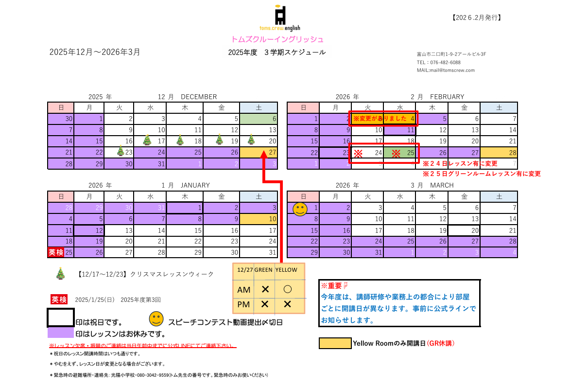 2025年度 3学期カレンダー